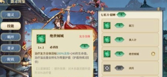 木属性器灵:绝大部分都属于辅助类型的效果,可以帮助我方的成员迅速的恢复血量,而且也可以给敌人带来更多的负面状态。典型的角色就是人尽皆知的星刀。
