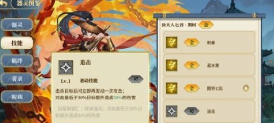 金属性器灵:可以造成高额的伤害,而且在面对敌方单体时还具有秒杀的效果,最为典型的角色其实就是徐夫人的匕首。