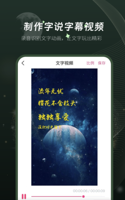 根据个人需求剪裁不同大小内容的视频,智能的字幕提取给大家节省了很多的时间,特色的模板一键就可以点击套用,自由的控制字幕时间,位置以及大小,从而让你的作品更加的吸引人。