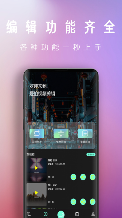 专业的视频编辑应用软件,有了它之后不管是短视频还是小影片的编辑都是可以轻松的搞定,各种专业的工作给大家提供一站式的服务,旋转,缩放,视频的合并以及片段的编辑都可以轻松的完成。