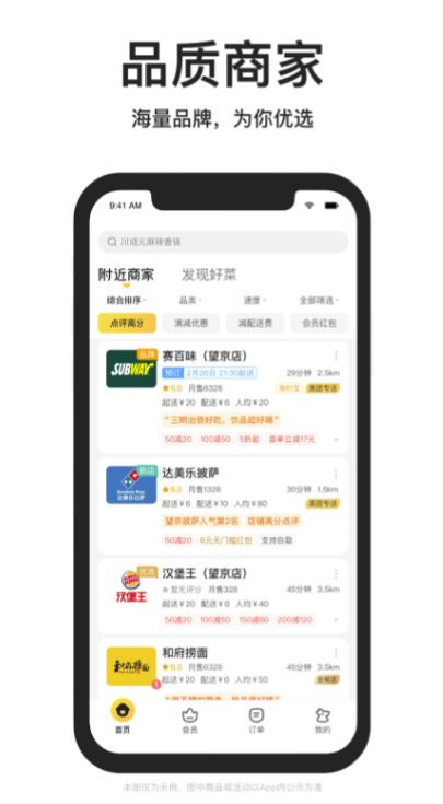 点外卖找美团送什么都快,这是当前最火的手机点外卖应用软件之一,覆盖全国将近两千多个城市,不管是美食,水果,鲜花还是蛋糕等,只要是你所需要的都可以实现,一键下单多种方式支付。