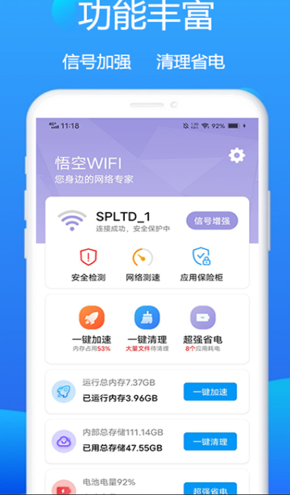 免费查看WiFi密码的时候可以方便连接信号好的网络线路,该软件能够更好地管理手机WiFi,具有很高的实用性,通过连接上WiFi以后可自动优化防护,使网络变得更安全。软件所占有的内存空间特别小,操作简单便捷。只需搜索的方式就可了解WiFi信号强弱,以及了解网络质量,保证网络的安全性。当手机流量比较卡顿到时候通过该软件也能够进行优化。