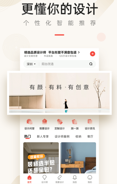 在装修之前适当的设计图纸很有必要,这样才能确保万无一失,确保打造让人满意良好的居家环境。设计app可根据每位业主所输入的数据进行定制化设计方案,更不需要支付太高的设计成本及费用。这款应用是装修设计指南,作为懂你的设计app,汇聚较多风格以及海量装修图片和真实案例,覆盖全国300多座城市,有上百万设计师已经入驻其中。