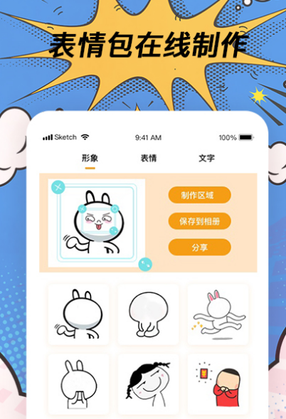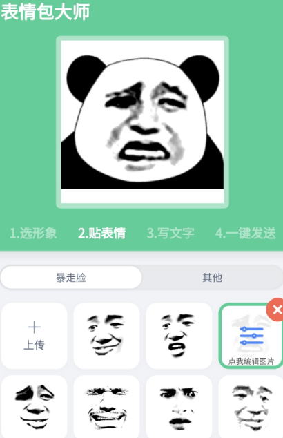 表情包制作app通过,通过分步操作,快速完成最终分享到社交软件中,还支持上传相册图片进行二次编辑,可以将图片背景设置成透明化,还有橡皮擦、画笔等多种功能。