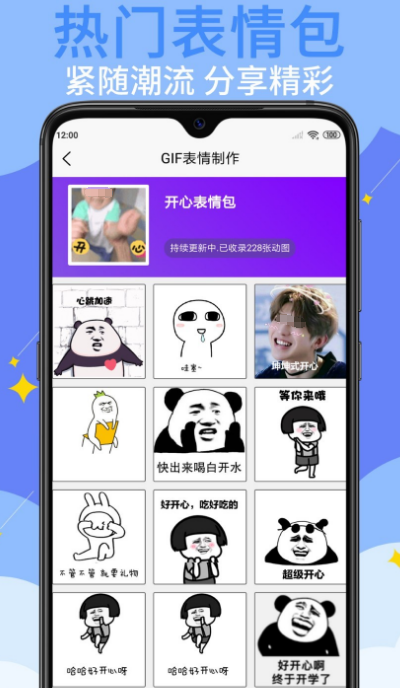 平台可进行diy创作,聊天斗图神器,当超热表情不容错过,有搞怪、卡通、动漫、明星各类内容任由挑选。