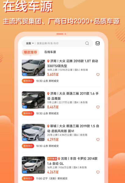 在众多汽车交易平台当中,这款应用一直都有较高知名度,在整个行业里属于佼佼者,作为国内领先交易平台,核心服务是为用户带来一站式解决方。通过出价车况查定安全支付等众多模式为国内各个汽车生产商以及品牌经销商提供独特的车源,目前覆盖超多城市,比如北上广、成都、天津、杭州、武汉等,有集中交付等现场。