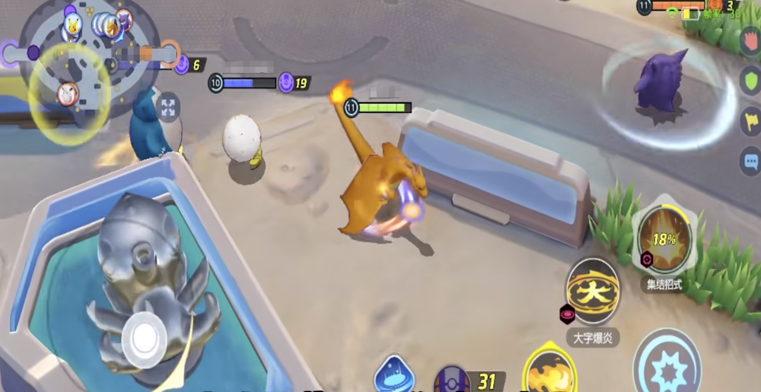 除了宝可梦等级会影响游戏胜负外,地图上还有许多boss,玩家击杀他们是可以获得buff,这也非常影响战斗胜负。地图设计思路也是对称性设计,地图上还有一些道具供玩家拾取。玩家捡到后会得到移速或者血量回复之类的加成,十分不错。