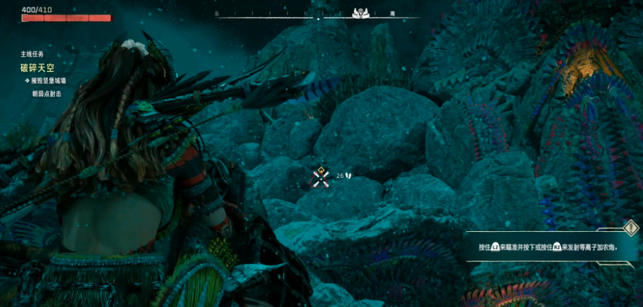 随着这位元首NPC的引导,就可以抵达坚堡城墙,然后我们就可以获得一副全息眼镜,这可以对后期的金属进行快速的扫描,随着到达城墙下通过瀑布攀爬到上方的山洞中,深入山洞就可以发现废弃坦克,我们即可引爆其中的能量和摧毁城墙,接下来就需要潜入叛军基地寻找加农炮,营地边缘就可以找到这个重武器,但是在寻找武器的过程当中可能会遇到震颤獠牙,此时需要向该机械兽鼻子两侧进行离子非弹的发射,而他掉落的相应战利品就是加农炮的重要附属装备,当成功撤离后,就可以成功让特可太派出勇士参加仪式,破碎天空的任务就完成了。