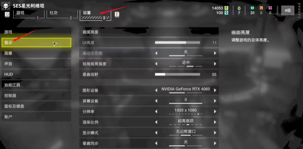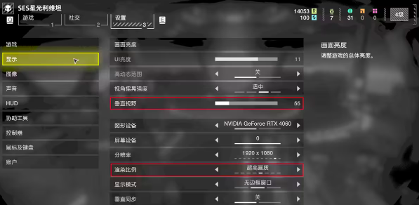 我们先来说一说游戏当中关于画面设置上的一系列问题,玩家可以在游戏设置当中点击显示选项,然后就可以看到关于画面亮度,UI亮度以及高动态范围,视角,摇晃强度等等一些对于画面的基本设定,玩家们可以按照自己的习惯进行相应的调整,当然影响游戏画面体验感的还有渲染比例和垂直视野这两大关键性要素,小编建议可以将垂直视野设在55,渲染比例设在超高画质上,整体的体验感真的是非常棒。