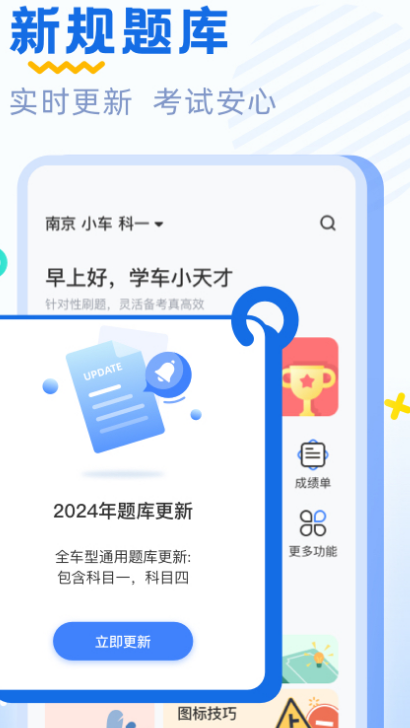 之所以该app被称为懒人考驾照,是因为它在帮助用户考驾照的时候有很多的技巧,其中包括速记技巧。不管是考科目一还是科目二以及科目三和科目四,都有精选的题目内容,还会对新的题库进行更新,让每个人在刷题的过程当中都掌握相关的技巧。真人讲师方面拥有数10年经验的驾考教学老师,会细致讲解易错点以及扣分点,告别死记硬背,只需记住关键词就可答题做题。