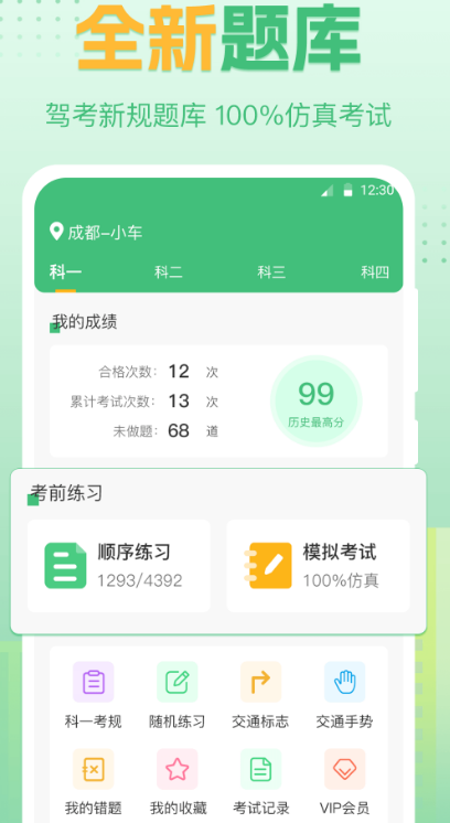 考试的时候通过多刷题的方式,可帮助每个学员顺利通过科目一和科目四考试。这款软件既能帮助用户刷题,也能够保证用户在刷题的时候不被打扰,让用户考试更安心。考试之前可通过仿真练习的方式看看自己的水平,并通过多种练习模式,让自己记住更多的考试题目。