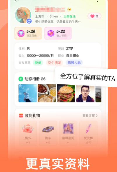 交友打发时间,相亲约会都可在该平台上完成,商业好友都在使用的社交app,不加好友也能快速开聊。其中有动态广场,我们可以看其他好友在干什么,完全不会出现尬聊现象,作为真实可靠的平台,可智能推荐兴趣相同的好友,找到适合的那个他。有附近人推荐,回复率超高,含有独特的语聊房,多人房间,多人玩法,倾诉个人心事。