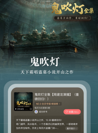 解压助眠的好产品,有声小说,热门内容一网打尽,比如鬼吹灯、人民的名义等等。很多原著小说都能在这里搜索。