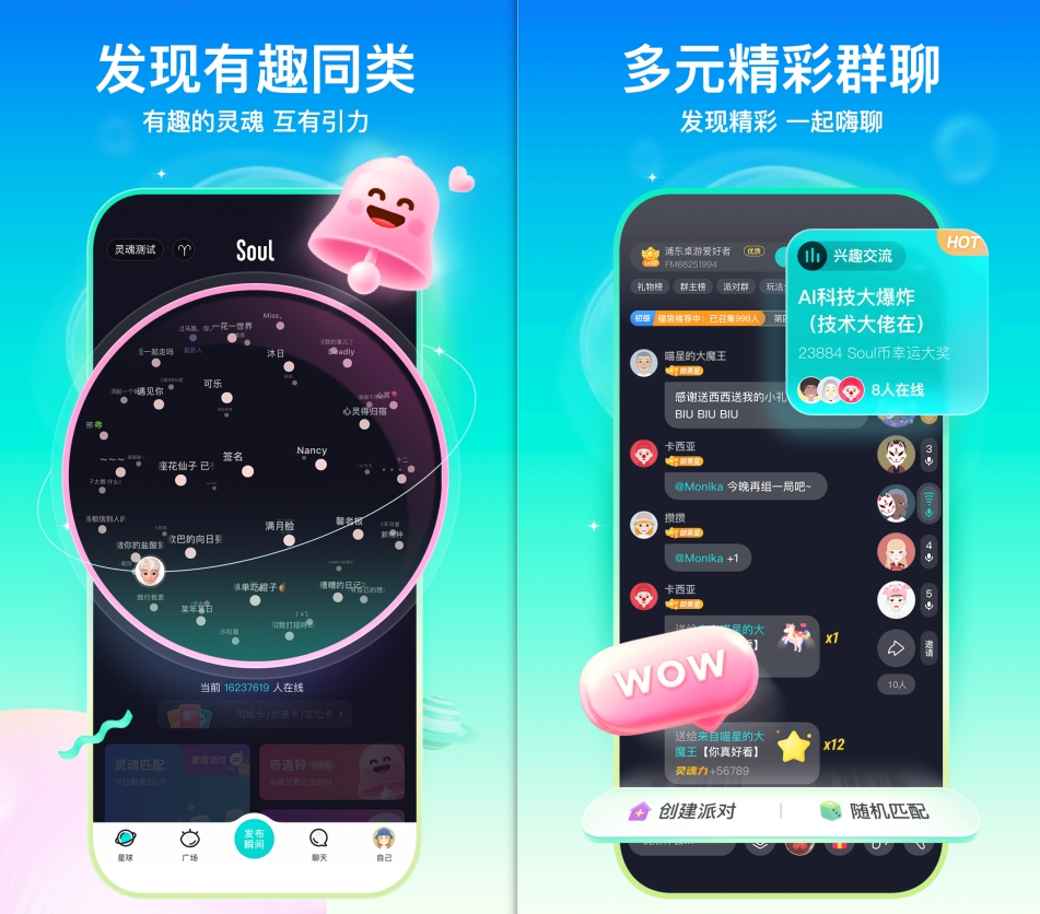 Soul为人们打造了一个充满魅力和活力的社交空间,这款APP通过独特的“灵魂鉴定”功能,帮助用户更深入地探索自我,找到真实的自己,同时帮助用户在Soul的社群中找到归属感。