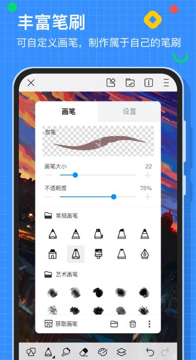 这个产品当中提供了海量的绘画工具,包括各种类型的笔刷、绚丽多彩的颜色、以及无限的图层等,可以满足用户从简单涂鸦到专业绘画的大部分需求。当你绘制好一个作品后,可以将其直接分享到社区里面,与其他创作者交流心得,还可以关注感兴趣的艺术家,建立自己的社交圈子。