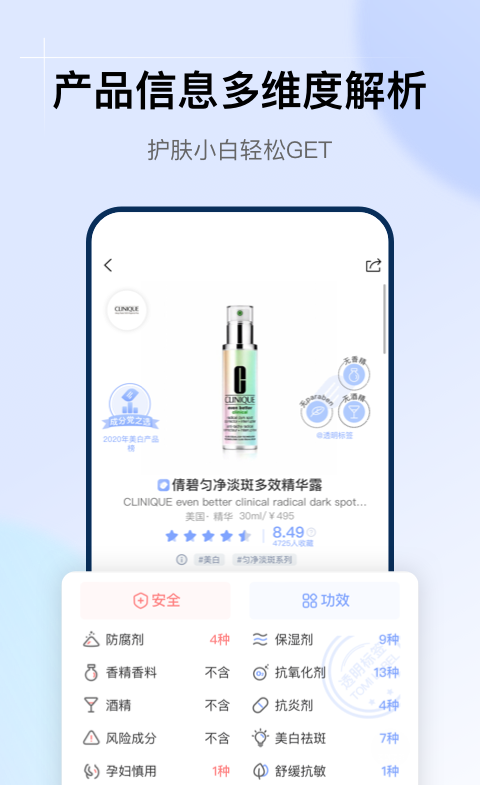 化妆品成分批号查询的软件,专业解读成分信息,功效、安全和匹配等方面,让大家从此避免盲目种草,了解一个化妆品要从了解它的成分开始。