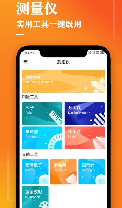 作为一款尺子测距仪工具,该软件非常的实用,只要点开以后就能够对各种物品甚至是身高进行测量,具有高效快捷灵活切换的功能,随时随地对物品进行测量。集合了很多款小工具,其中除了尺子以外,还有水平仪、指南针、小电筒等,在测量物体长度时,不仅准确度非常高,而且各种单位都有。