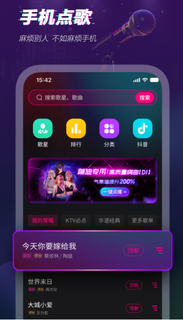 用这款软件来唱歌是非常简单的,通过手机扫码连接点歌机以后就能操作,并且还有影院电音、电音派对等等,想学习唱歌也可到该软件上来学。