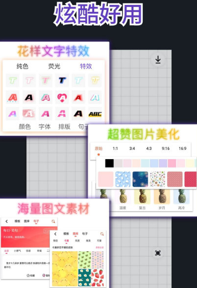 利用这款p图神器可以刷爆朋友圈,还能制作小说,短视频封面,制作手抄报贺卡,只要有p图拼图为图片添加文字的需求,都能利用该app完成。
