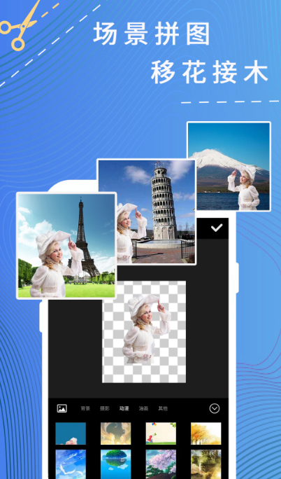 方便的抠图p图app,数百种背景任由选择,轻松抠图换背景,快速实现人像合成,无需ps,不需掌握复杂的技能,轻松实现抠图修改文字。