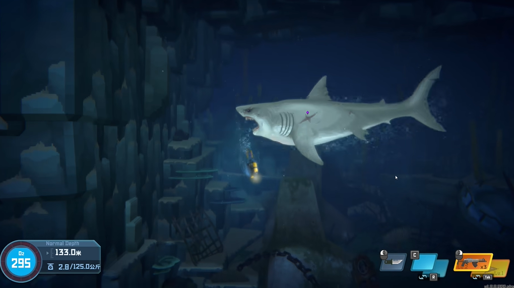 其玩家需要学会观察大白鲨的攻击模式。大白鲨在冲锋前通常会有短暂的停顿,这是玩家躲避攻击的最佳时机。当大白鲨开始冲锋时,玩家应该迅速向旁边游动,以避开它的冲撞。同时,玩家还需要注意大白鲨的头部摆击,这种攻击方式通常在玩家距离大白鲨较近时发生。为了避免被击中,玩家应该保持足够的距离,并在大白鲨摆头时迅速后退。