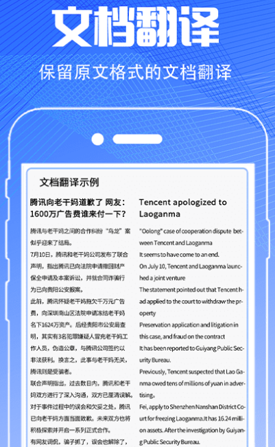这款应用是出国旅行点餐购物的神器,还有拍照转文字功能,更是办公学习到得力助手。对于学生党来说,可一键拍照取字翻译,对于工作党可直接上传电子文档翻译整篇文章,对于旅游休闲爱好者是口袋中的翻译神器,外出旅行购物突破语言障碍。