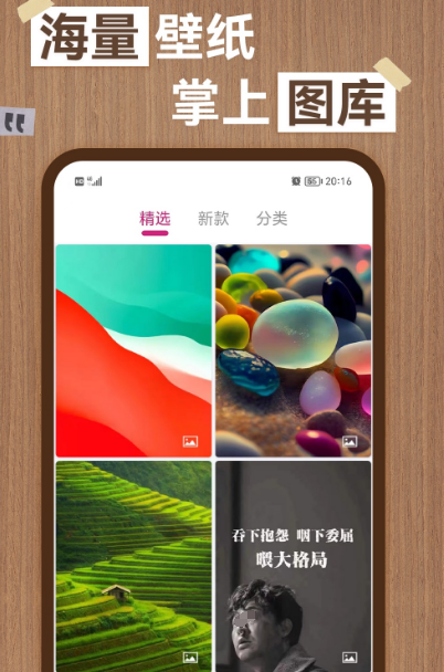 材种类齐全,有铃声、文案、锁屏、头像等。完美适配高清大屏手机。各种图片总有一款适合你多种不同分类,比如明星、可爱、萌宠、自然风景等。