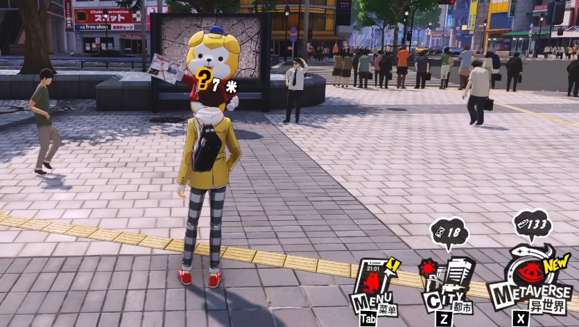 这个支线其实是不太好触发的,一般大家走过任务地点的时候可能就直接略过这个地方了,首先需要大家来到站前广场上面,这里大家可以看到一个广告牌,旁边站着的一个玩偶就叫做阿七,这个地方大家可能就会忽略掉,很多玩家不会去找它对话。