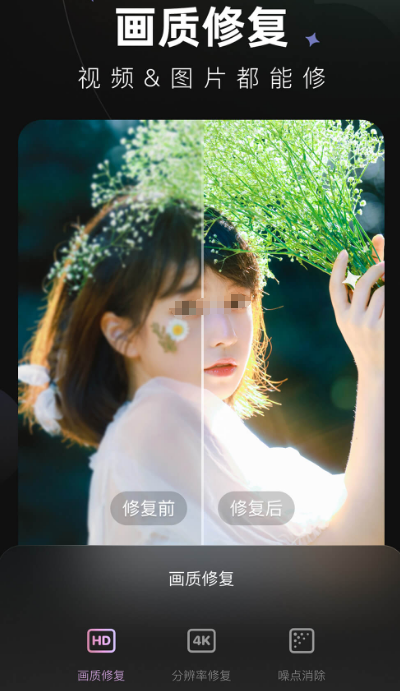 如果正在寻找简单应用,包含超多功能的照片编辑器,这款应用轻松满足你的需求。有画质修复视频、人像美容、一键大片、视频剪辑等多种实用工具。