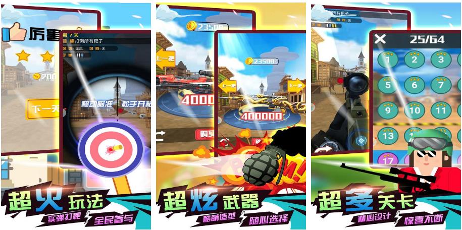 这就是一款以竖屏打靶作为核心的游戏,这款游戏在全国都有较高的知名度选择画面渲染的技术,打造出逼真的射击场面。在游戏中有种类比较丰富的靶子,无论是小动物还是僵尸都能有机会成为大家练习的目标。同时在游戏中还有一些相对比较真实的武器,让每一个玩家都有一种身临其境的感受,很是逼真,喜欢的话就到游戏中去挑战一下关卡。