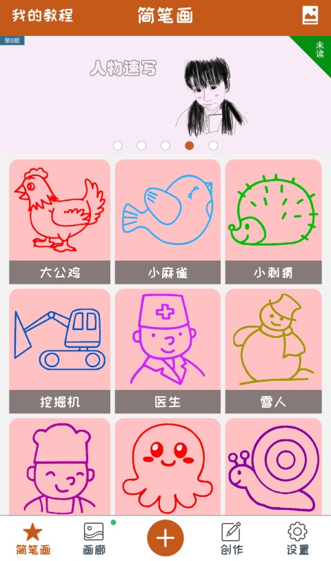 只需要跟着教程一笔一笔的画就能在很短的时间内完成一个精美的作品了,每天还会更新作品自己也可以创建新的简笔画教程,各种绘画模式和画笔随意选。