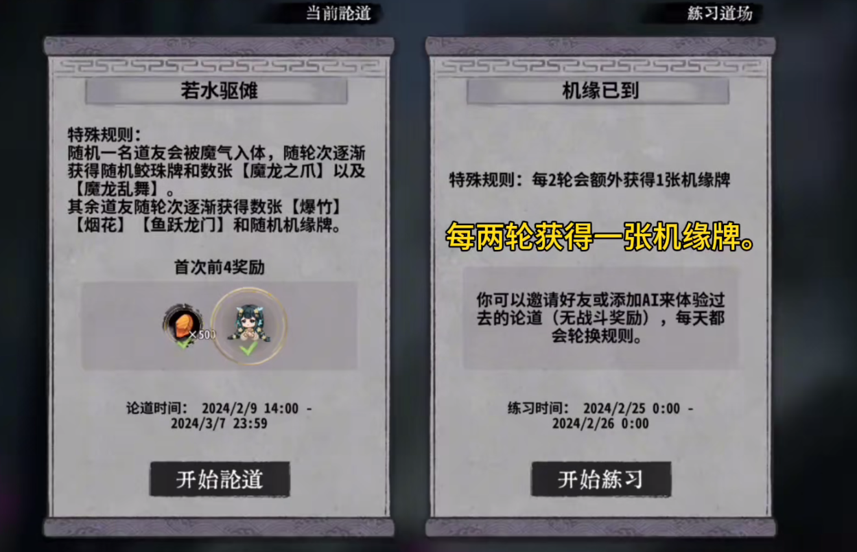 玩家在体验游戏的时候想要获得机缘牌,一般在每人开始时有可能会获得机缘牌的福利,当然选择对应的仙命以后,玩家也是有可能会获得机缘牌的。一旦玩家获得机缘牌之后,大概率是可以置换出对应的法宝,灵宠,不过也有部分玩家小概率置换后拥有门派秘术牌。