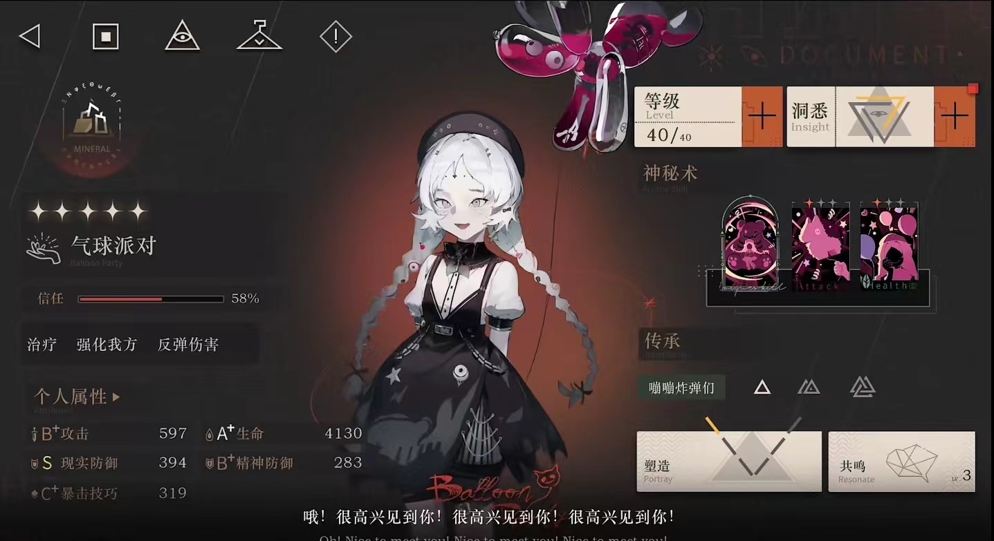 气球派对这个角色拥有伤害反弹的能力,还同时拥有强化以及治疗的多种能力,他所拥有的名叫好孩子的神秘术是一个群伤技能,在战斗的时候使用的话,会为整个团队叠加一层减伤的效果,皮纳塔塔神秘术则是一个单体攻击技能,在特定的条件下,使用这个技能的时候,敌方的防御效果将发挥不出来。
