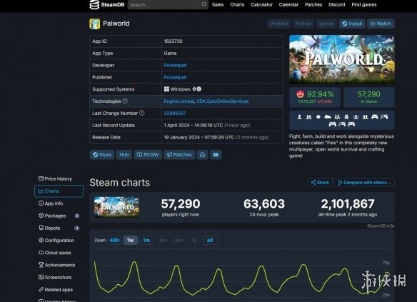 《幻兽帕鲁》自1月19日推出后便大受欢迎,同时在线玩家数超37万人。然而近三个月后,该作在Steam上的玩家数量已经减少了97%。通常情况下,游戏推出后随着时间推移,玩家数量会逐渐减少。然而《地狱潜者2》和《博德之门3》的情况表明,推出很长时间后仍能吸引成千上万的玩家。而《幻兽帕鲁》显然后劲不足,因为缺乏新内容,难以继续吸引玩家。