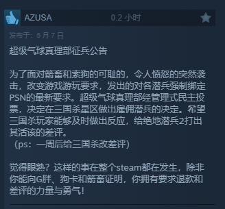 索尼这波滑跪带来的效果也是立竿见影的,在完成了自己的目标,玩游戏不再需要绑定PSN账户后,已经有不少玩家将评价重新改为了好评。毕竟,如果不是这次风波,我相信绝大部分刷上头的潜兵们还是愿意用大片绿色的好评来吸引更多玩家入坑的。