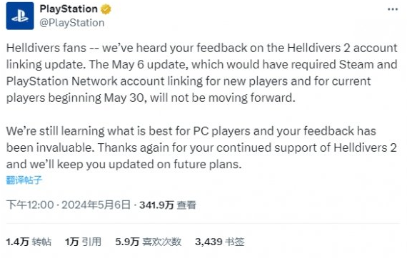 在公告发布后的3天里,《绝地潜兵2》就新增了20万条以上的差评,总差评数更是已经逼近25万,最终索尼于5月6日做出回应,表示自己已经听到了玩家们的声音,并且会取消公告中提到的“强制绑定PSN账户”的更新。