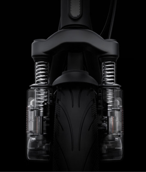 此外,九号电动滑板车F2升级版还采用了30mm的双筒前减震,能够实现超长有效减震行程,即使是在颠簸的路面上,也能如履平地,骑行舒适度大大提升!