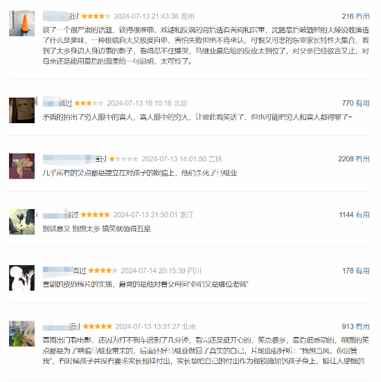 影片充满了欢乐,沈腾和马丽的表演被称赞为天衣无缝的化学反应。喜剧元素和情感深度并存,让观众笑中带泪。对家长对孩子过度掌控的讽刺和反思被认为是影片的亮点之一。