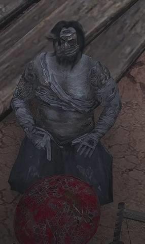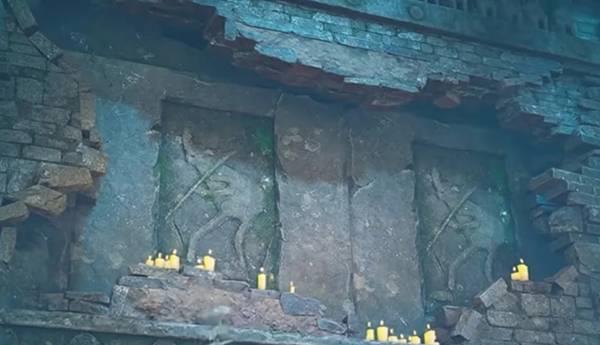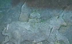 现在我们是往左边走(以我们视角来说,是看到鬼新娘在我们的右手边,然后我们继续往前),会看到一个长矛猪人壁画,后面简称猪人。