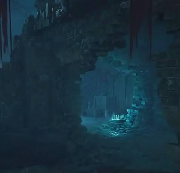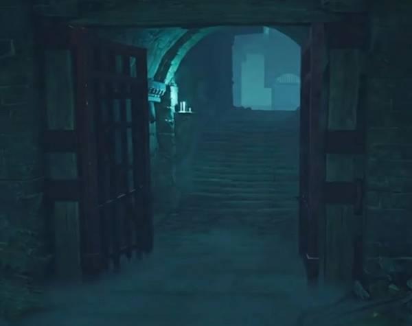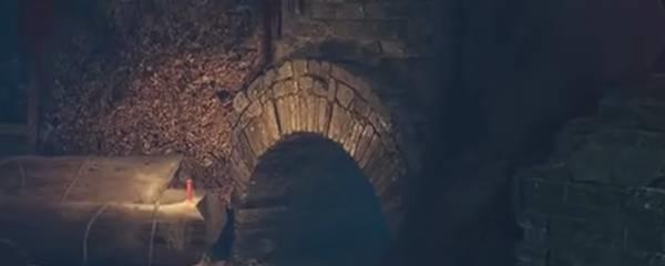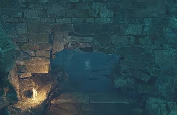 注意面对棺材这个位置,就直接往下跳,然后右转,能够看到一个下水道。