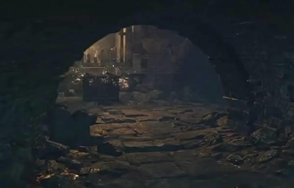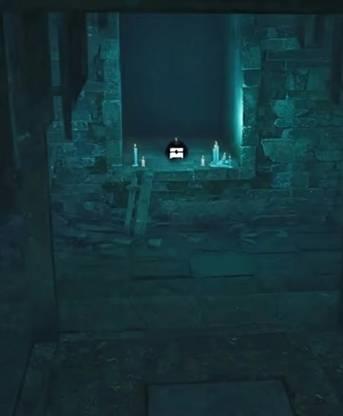 往前右转,跳入地穴之后,可以看到一个有白蜡烛的地穴,那边有第九个宝箱。