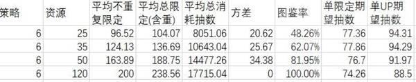 模拟不同抽卡策略和卡池投入资源量对限定角色抽取数量,期望的影响。