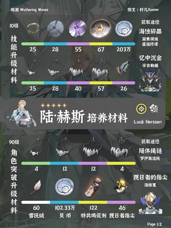 在《鸣潮》中,3.1版本下半推出了新角色陆赫斯,想知道培养他需要哪些材料吗?以下是“轩儿Xuaner”整理的陆赫斯培养材料清单,希望对大家有所帮助。