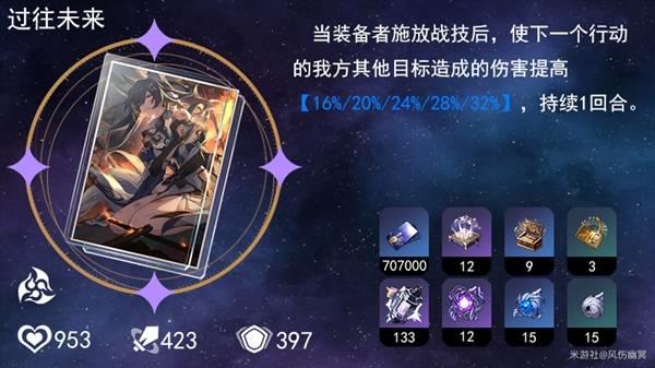 可以看做顶配【过往未来】,使用完战技可以让该角色提升伤害,并且大招恢复战技点 1,提升至7点,如果有四魂就是8点了!