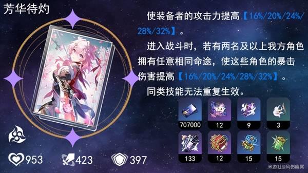 这个虽然攻击力提升没用,但是如果队里有双命途配队时可以进一步提升这些角色的爆伤。