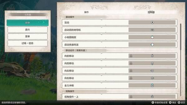 新游戏:开始新游戏 继续游戏:继续游戏 选项:可以更改各种设置(游戏设置、操作设置、图像设置、显示器设置、声音设置、视角设置、语言设置) 手柄按键设定:可以更改手柄键位(可分别更改原野、战斗、菜单、过场信息、的键位) ※部分操作的键位已被锁定,无法更改。无法更改的键位会标有上锁的符号。 键鼠按键设定:可以更改键鼠的键位(更改键鼠键位时,可以为一个功能设置两个按键。键盘和鼠标均可设置)※部分操作的键位已被锁定,无法更改。无法更改的键位会标有上锁的符号。 结束游戏:结束游戏