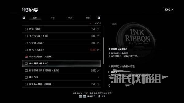 CP点数可以购买解锁【奖励内容】中的项目,其中还包括无限耐久近战和无限弹药等实用道具。