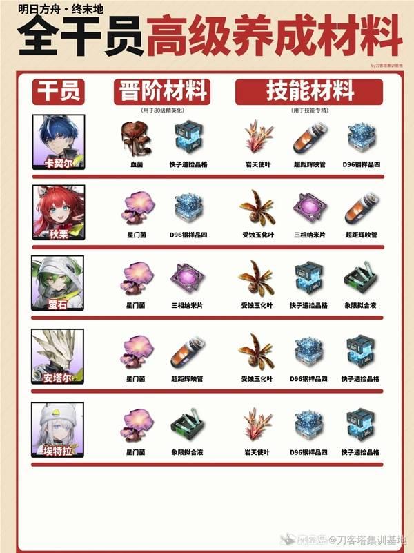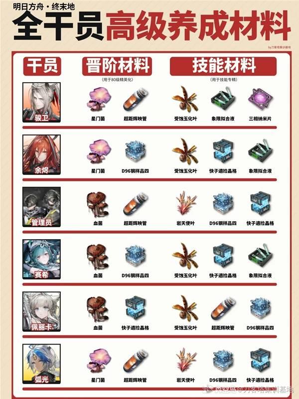 明日方舟终末地,全干员高级材料需求一览