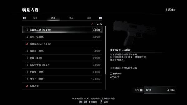 格蕾丝微冲可以先不买,确实比较贵,而且可以无限子弹玩里昂的安魂打疗养院。虎彻刀也是先别买别买,挺拉的,反击就插怪身上了,还得把它打死。