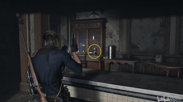 继续前进来到绿洲咖啡厅,隔着柜台看向对面,使用手枪打掉黑白浣熊先生11。咖啡厅内部能拿到一个废料,来到隔壁苹果门酒店,柜台处能获得一个医疗注射器,酒店西侧地球仪旁边捡到一个废料。
